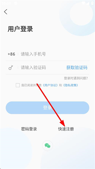 3、在用戶登錄頁面,點擊快速注冊,進(jìn)入用戶注冊頁面。