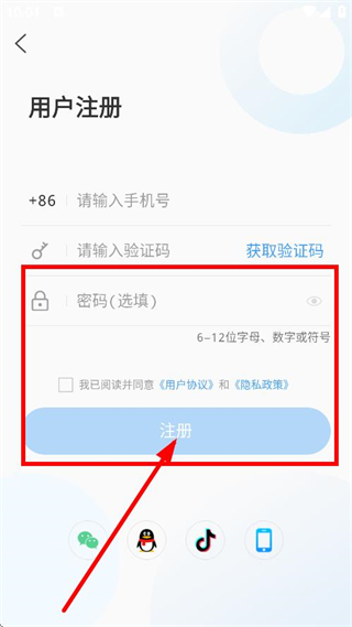 5、最后我們設(shè)置密碼后,可立即點擊注冊,完成注冊操作。