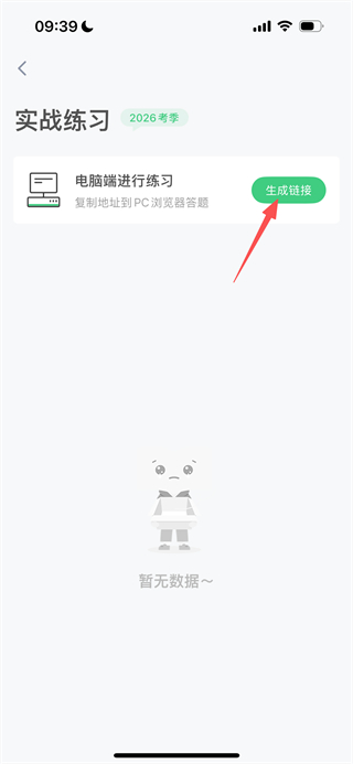 3、在實(shí)戰(zhàn)練習(xí)頁(yè)面,點(diǎn)擊生成鏈接按鈕,生成PC考試鏈接。