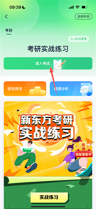 2、在考研實(shí)戰(zhàn)練習(xí)頁(yè)面,點(diǎn)擊進(jìn)入考試按鈕,進(jìn)入實(shí)戰(zhàn)練習(xí)頁(yè)面。