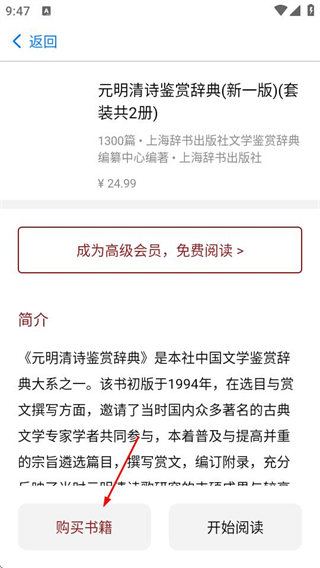 3、在書籍詳情頁面,點(diǎn)擊購(gòu)買書籍,完成書籍購(gòu)買操作。