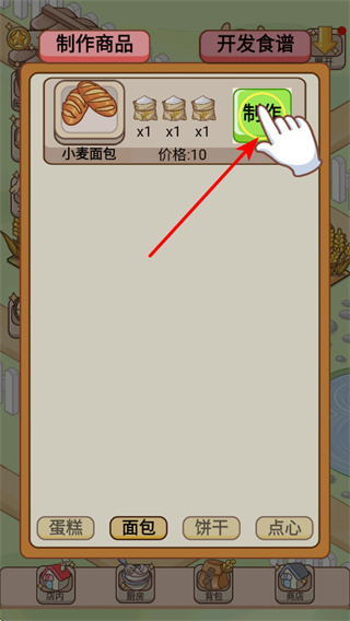 4、點擊制作按鈕可生產如小麥面包之類的商品,這是獲取收益的核心操作,關注商品的價格和制作成本以實現利潤最大化。