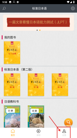 1、打開(kāi)日語(yǔ)學(xué)習(xí)類APP,點(diǎn)擊底部設(shè)置選項(xiàng),進(jìn)入設(shè)置頁(yè)面。