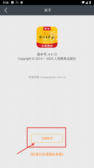 3、在關(guān)于界面,點(diǎn)擊注銷賬號(hào)按鈕,進(jìn)入注銷說(shuō)明頁(yè)面。
