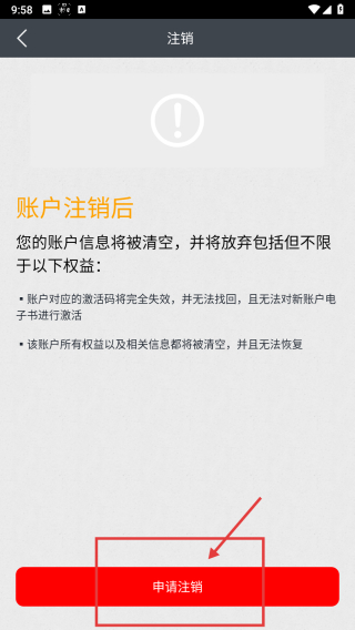 4、在注銷頁(yè)面,點(diǎn)擊申請(qǐng)注銷按鈕,按照提示完成賬號(hào)注銷操作。