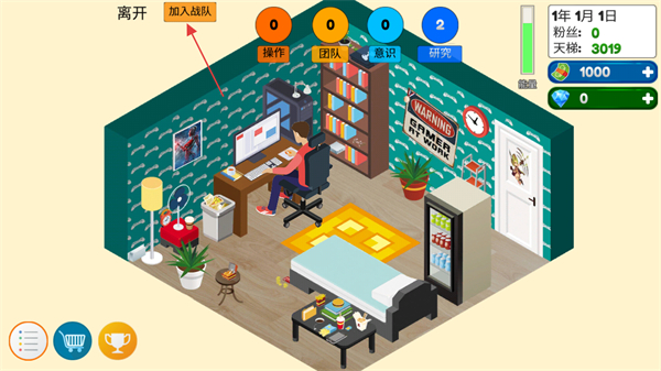 1、進入游戲后通過初始天梯排名,可以選擇點擊左上角的加入戰(zhàn)隊按鈕,在戰(zhàn)隊列表選擇戰(zhàn)隊加入。