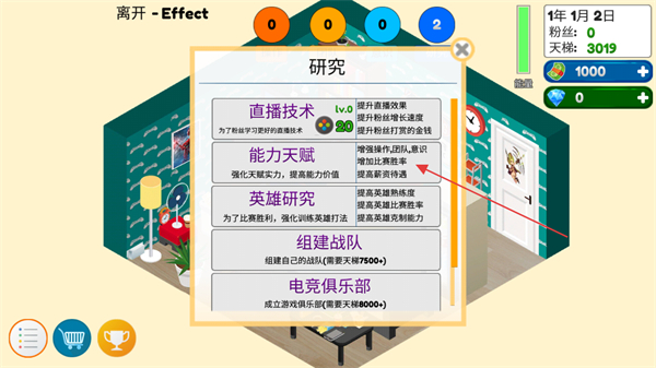 4、通過消耗研究點數(shù)可以提升角色的能力天賦、英雄研究或直播技術(shù)等級等。