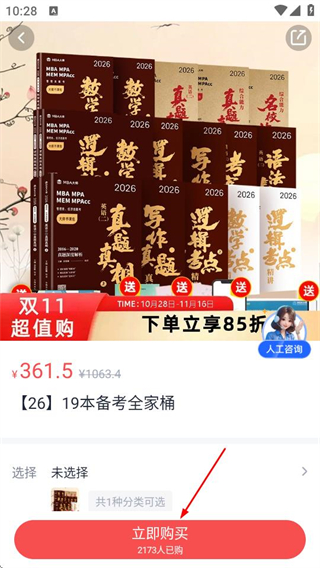 3、在書籍詳情頁(yè)面,點(diǎn)擊立即購(gòu)買按鈕,可完成書籍購(gòu)買操作。