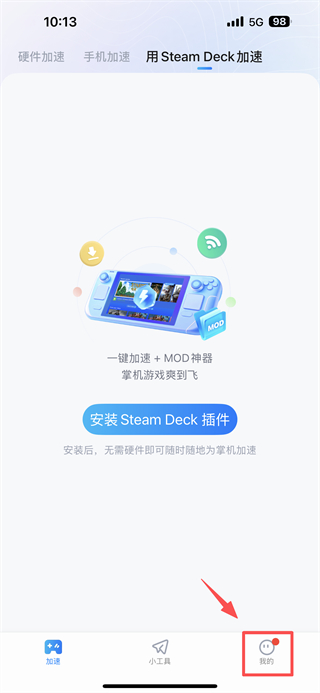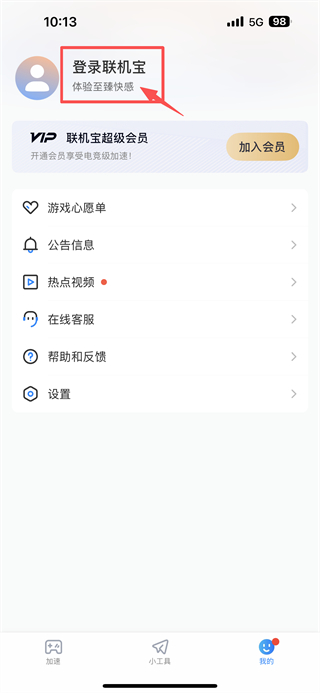 1、打開(kāi)游戲加速類(lèi)APP,點(diǎn)擊底部我的選項(xiàng),進(jìn)入個(gè)人中心頁(yè)面。