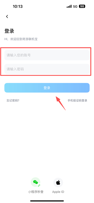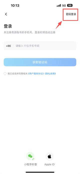 3、在登錄頁(yè)面,點(diǎn)擊右上角密碼登錄選項(xiàng),切換密碼登錄模式。