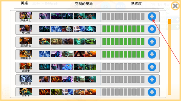 3、在英雄研究界面,可以選擇比較喜歡或比較常用的英雄點擊加號提升英雄熟練度。