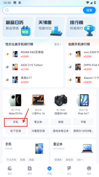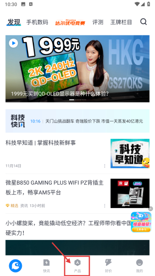 1、打開科技資訊類APP,點(diǎn)擊底部產(chǎn)品選項(xiàng),進(jìn)入產(chǎn)品分類頁面。