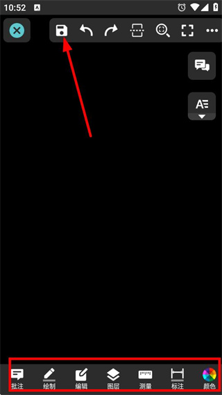 3、可利用下方功能按鈕如批注、繪制進(jìn)行編輯,編輯完成后點(diǎn)擊保存圖標(biāo)按鈕,即可保存新建圖紙。
