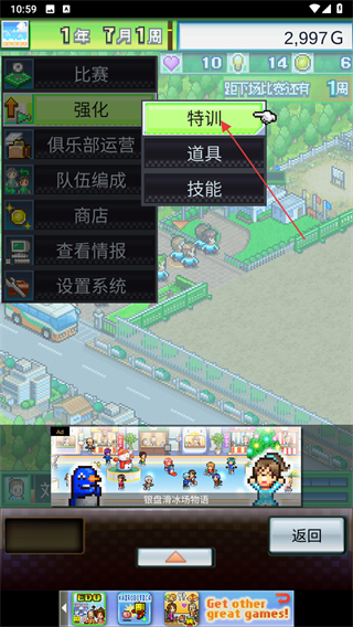 1、點(diǎn)擊右下角菜單選擇強(qiáng)化,可以對(duì)選手進(jìn)行特訓(xùn),或使用道具提升技能等方式提升選手實(shí)力。
