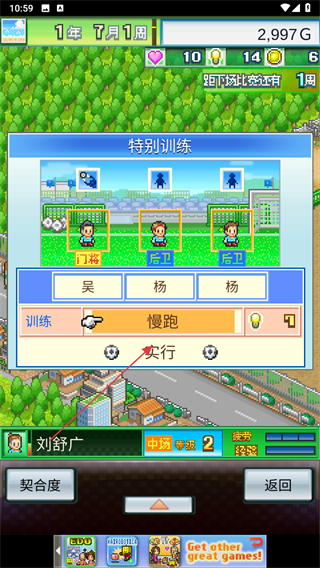 2、可以選擇需要訓(xùn)練的選手對(duì)其進(jìn)行特別訓(xùn)練,選擇訓(xùn)練模式點(diǎn)擊實(shí)行開(kāi)始訓(xùn)練。