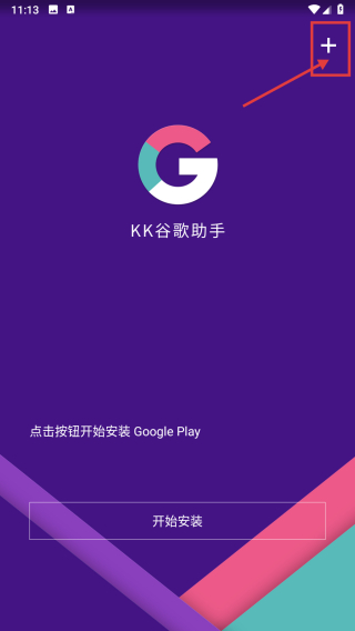 1、打開KK谷歌助手APP,點擊右上角+號,展開功能菜單。