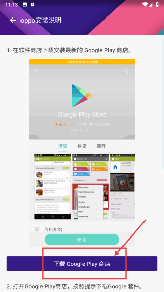 4、在安裝說明頁,點擊下載Google-Play商店按鈕,開始下載安裝Google-Play商店。