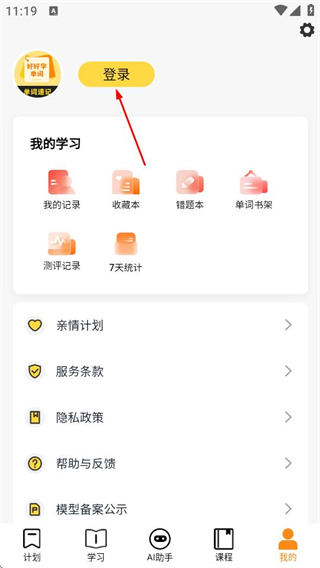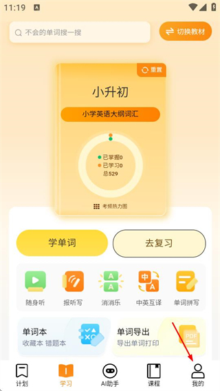 1、在好好學(xué)單詞首頁,點擊右下角我的選項,進(jìn)入個人頁面。