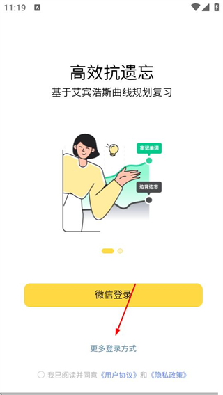 3、在登錄方式選擇頁面,點擊更多登錄方式選項,進(jìn)入驗證碼登錄頁面。