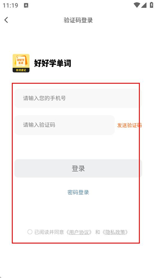 4、在驗證碼登錄頁面,輸入信息,勾選協(xié)議后點擊登錄,完成賬號登錄。