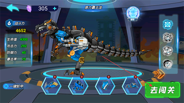 1、升級(jí)機(jī)甲部件,提升戰(zhàn)斗力、生命值等屬性,點(diǎn)擊去闖關(guān)進(jìn)入關(guān)卡。