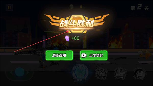 4、消滅所有僵尸后獲得戰(zhàn)斗勝利,領(lǐng)取獎(jiǎng)勵(lì),積累資源用于機(jī)甲升級(jí),繼續(xù)挑戰(zhàn)新關(guān)卡。