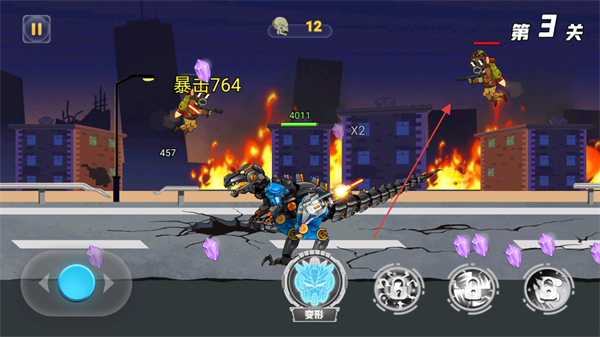 3、應(yīng)對(duì)飛行僵尸的空中攻擊,靈活移動(dòng)機(jī)甲,發(fā)起反擊,打出暴擊傷害消滅它們。