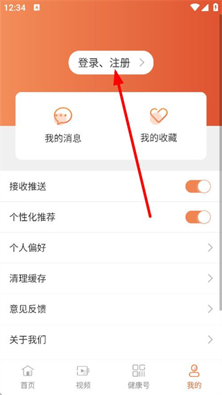 2、在個人頁面,點擊登錄/注冊,進入快速登錄頁面。