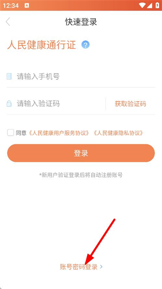 3、在快速登錄頁面,點擊賬號密碼登錄,進入賬號密碼登錄界面。