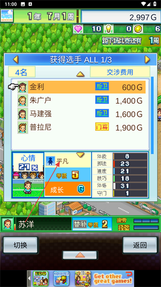 4、可以使用金幣快速談判,將選手心情提升到百分百則可以成功獲得到新的隊(duì)員。