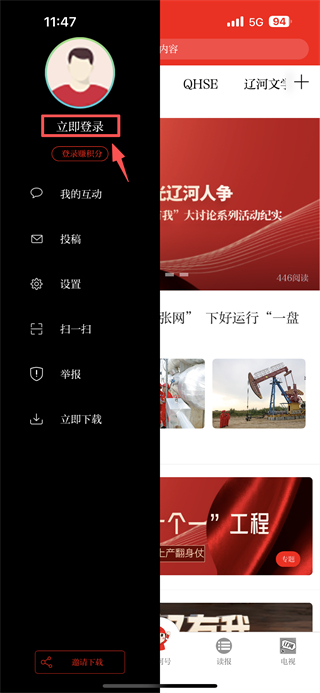 2、在側(cè)邊欄中,點(diǎn)擊立即登錄按鈕,進(jìn)入登錄頁面。