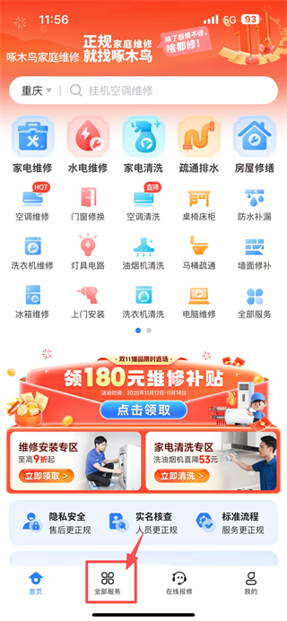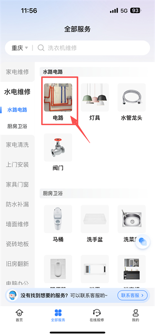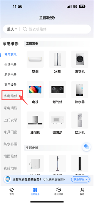 1、打開家庭維修類APP,點擊底部全部服務(wù)選項,進入服務(wù)分類頁面。
