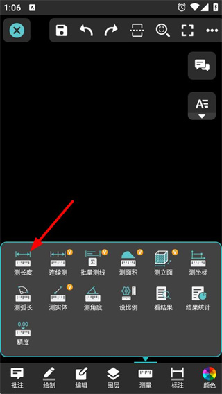 3、在彈出中的功能欄中,點(diǎn)擊選擇測長度。