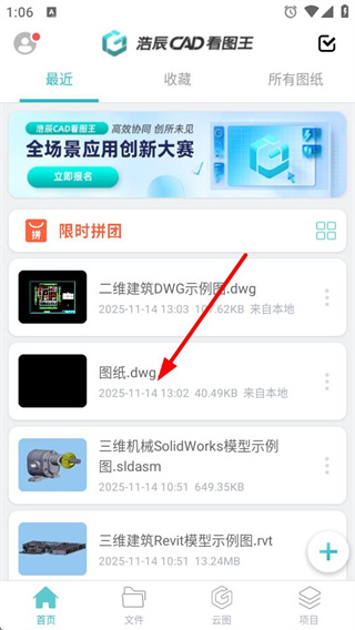 1、選擇需要查看的圖紙,進(jìn)入圖紙查看頁面。