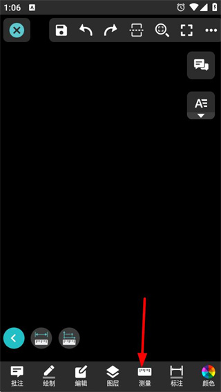 2、在圖紙查看頁面找到下方工具欄,點(diǎn)擊測量按鈕。