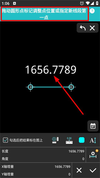 4、在圖紙上選擇兩個(gè)位置后,可中對圖紙進(jìn)行測量操作,可得到兩個(gè)位置的距離。