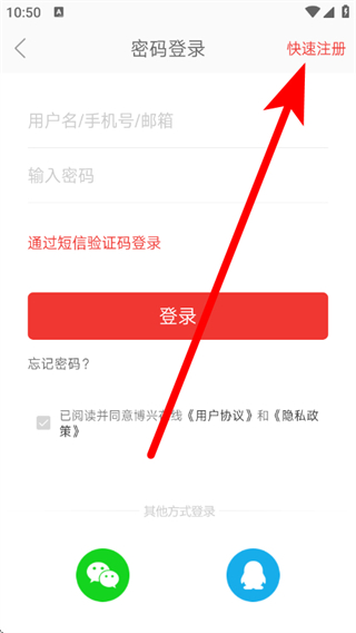 3、在登錄界面,點擊快速注冊,進入快速注冊流程。