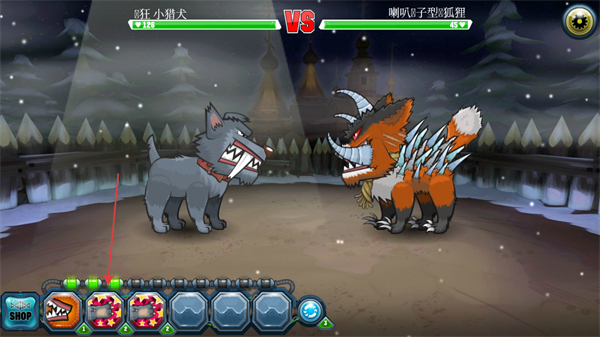 2、操控瘋狂小獵犬,選擇下方攻擊技能,準(zhǔn)備對(duì)戰(zhàn)喇叭V子型狐貍。