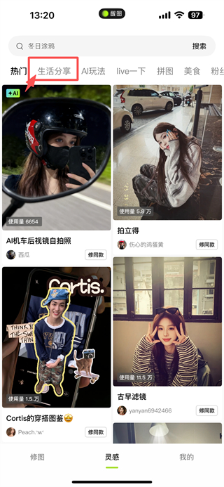 2、在模板推薦頁(yè)面,點(diǎn)擊生活分享分類,瀏覽生活類模板列表。
