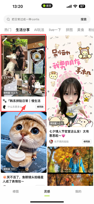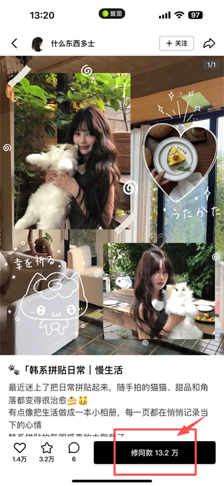 4、在模板詳情頁(yè),點(diǎn)擊修同款按鈕,開始制作同款韓系拼貼風(fēng)格圖片。