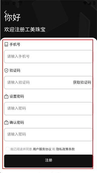 3、在注冊(cè)頁(yè)面,輸入信息,勾選協(xié)議后點(diǎn)擊注冊(cè),完成賬號(hào)注冊(cè)。