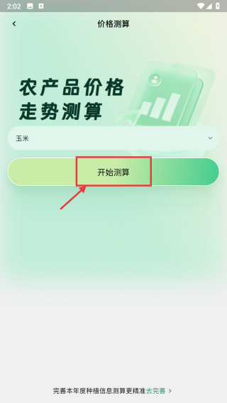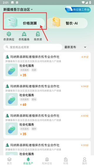 2、在農(nóng)業(yè)生產(chǎn)頁面,點擊價格測算選項,進入農(nóng)產(chǎn)品價格走勢測算界面。
