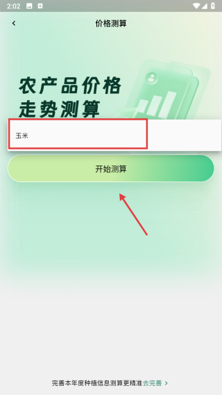 3、在價格測算界面,選擇玉米作為測算農(nóng)產(chǎn)品。