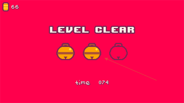 4、到達終點即為過關(guān),結(jié)算頁面會顯示關(guān)卡內(nèi)獲得的金幣鈴鐺數(shù)量和通關(guān)用時。