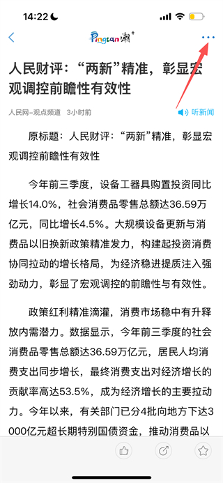 2、在新聞詳情頁(yè)面,點(diǎn)擊右上角…按鈕,彈出功能菜單。