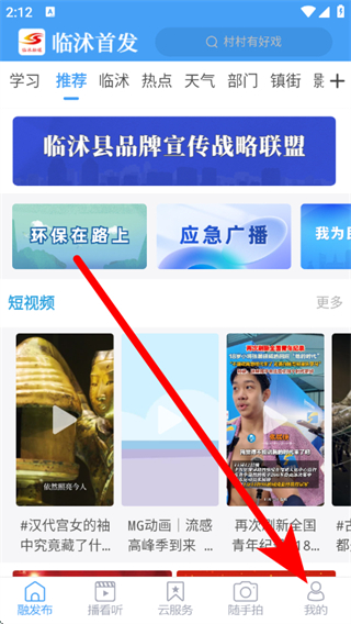 1、打開臨沭融媒,點擊底部我的,進入個人中心頁面。