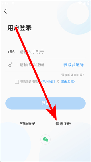 3、在登錄界面,點擊快速注冊,進入用戶注冊流程。