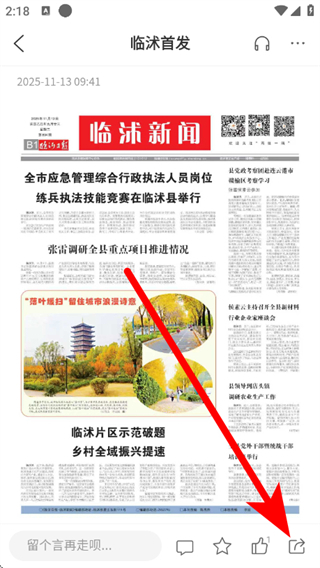 3、在新聞詳情頁(yè),點(diǎn)擊右下角分享圖標(biāo)。