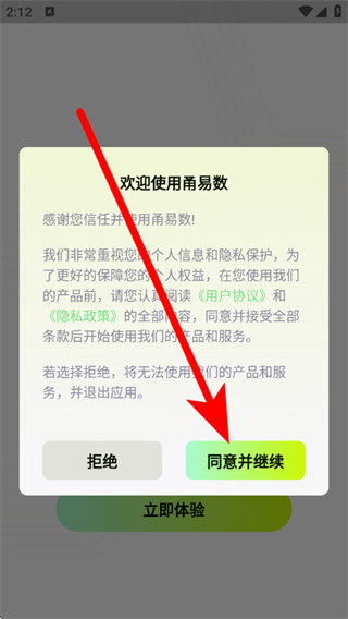 1、打開甬藏通,在彈窗中,點擊同意并繼續(xù)。