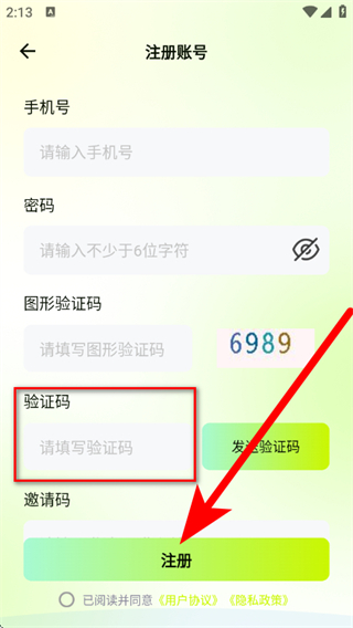 4、輸入驗證碼后,勾選已閱讀并同意相關協(xié)議,點擊注冊,完成操作。